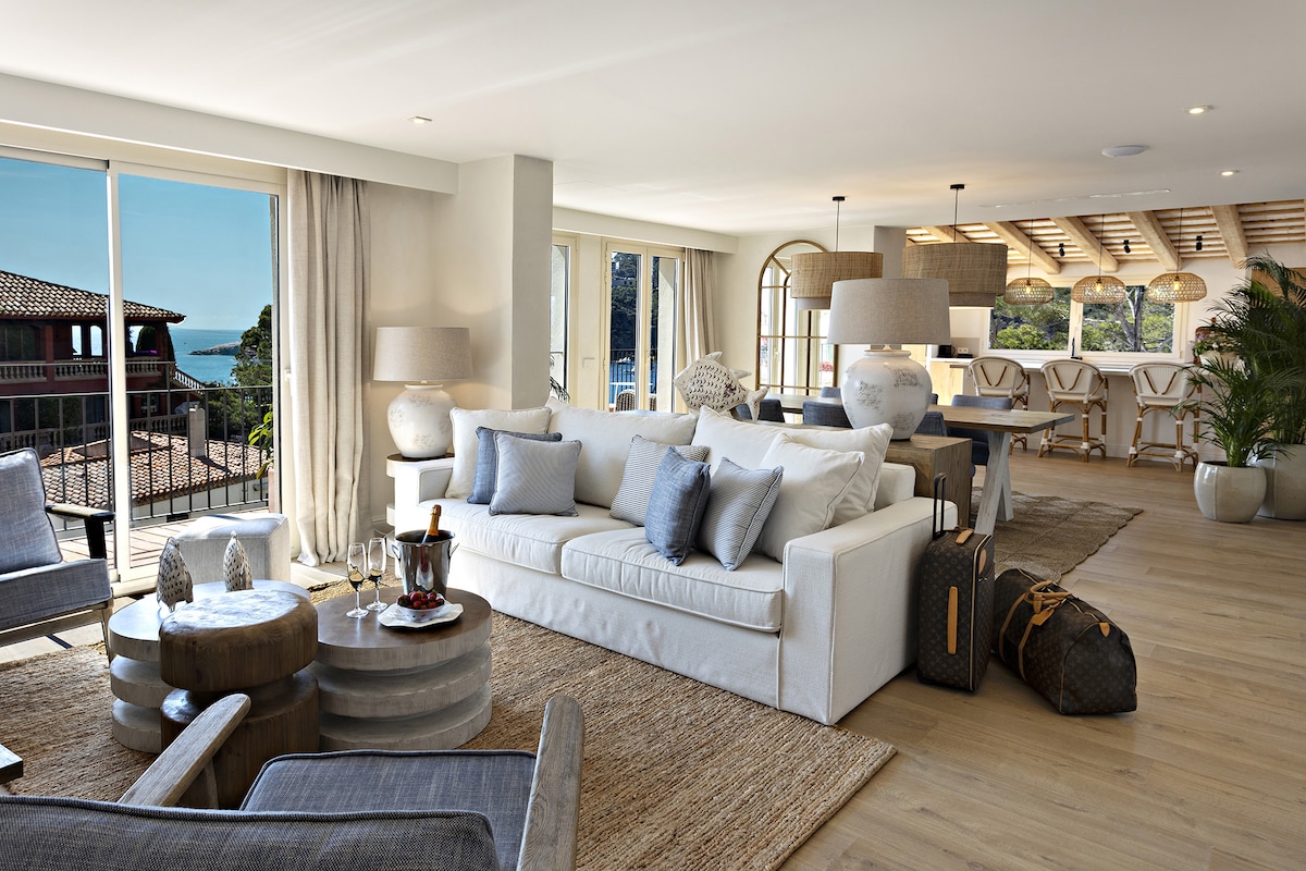 An exclusive waterfront experience with an exceptional view in a charming flat freshly renovated in 2023 with all modern comforts (fully equipped kitchen, air conditioning, wifi, Netflix, quality bedding, etc.). Its unique view and large balcony perched above the sea will give you unforgettable memories of the sound of the waves. On site: large swimming pool, private garage. Within walking distance: supermarket, beach bar-restaurant, hiking trails.