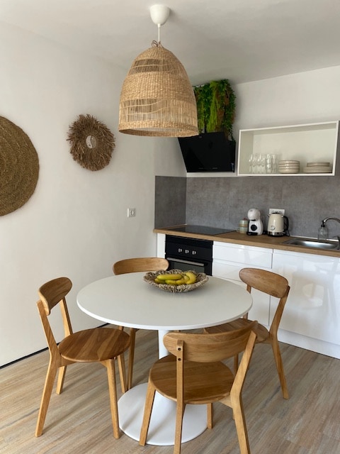 Welcome to Horizonte Azul, a cozy nest with astonishing views over the sea and the spectacular cliffs of the Moraig cove. Located in a pretty residential area, your two stylish rooms have individual entrances and are connected through a beautiful bathroom. On your private shaded terrace, an outdoor table and furniture w/sink allows you to prepare breakfast or cold bites. Activities? Book a private Pilates lesson on site, or enjoy hiking and other sports close by. We look forward to you staying!