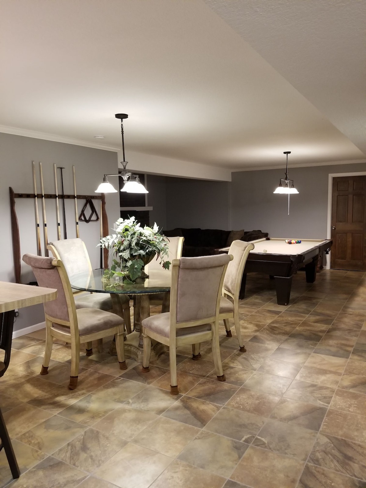 Three bedrooms (one queen and four twin), two tiled bathrooms, a twin-over-twin bunk and a sleeper-sofa. House sleeps nine comfortably. Six smart TV's. Dogs allowed! Large, fenced backyard. Two washers and two dryers. Basement is dedicated playroom and has a large arcade, pool table, skee ball, foosball, basketball machine, Barbie House and play kitchen. Dozens of board games and outdoor toys. Ultra-fast internet. Easy 20-minute drive from both from the airport and Legends Mall and Plaza.