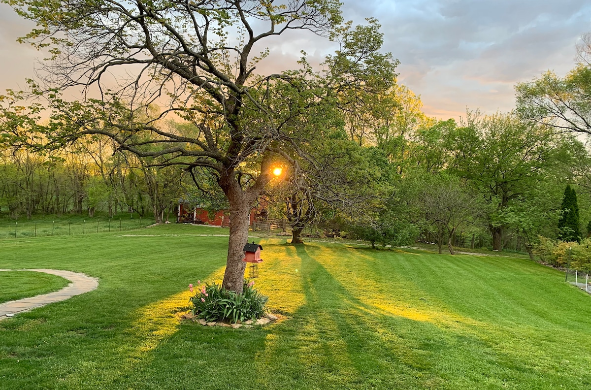 Relax on the farm, visit the farm animals, hike and explore or venture out in Kansas City, at this unique and tranquil getaway. Conveniently located near the city. Enjoy sporting events, night life, concerts, plays, ballets, the symphony, family fun parks, nature and unique, small towns and wineries. Minutes from the beautiful small town of Parkville! Enjoy many museums, Union Station, or learn about the history of Kansas City. The “Martin Farm Shanty” is private but so conveniently located.
