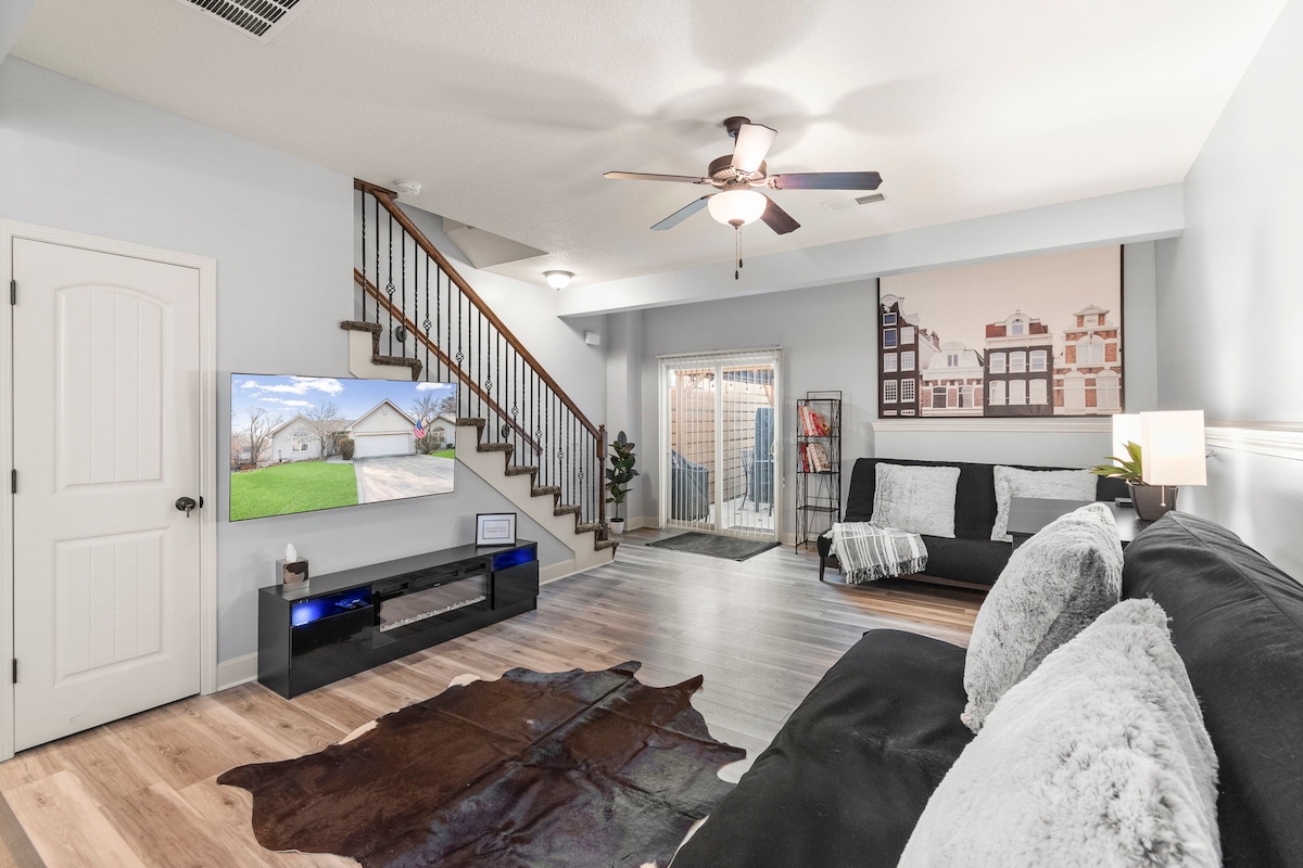 This family friendly home comes complete with a King bed Master Suite, plus plenty of rooms and beds for your big family or group! Searching for the perfect home base with the perfect blend of relaxation and convenience? Enjoy a fully-equipped kitchen, high-speed Wi-Fi, two cozy living spaces! Located just 5 minutes from Zona Rosa and 10 minutes from KCI Airport, with easy highway access for exploring KC. 20 minutes from many landmarks like Power and Light, Worlds of Fun, Sporting KC and Arrowhe