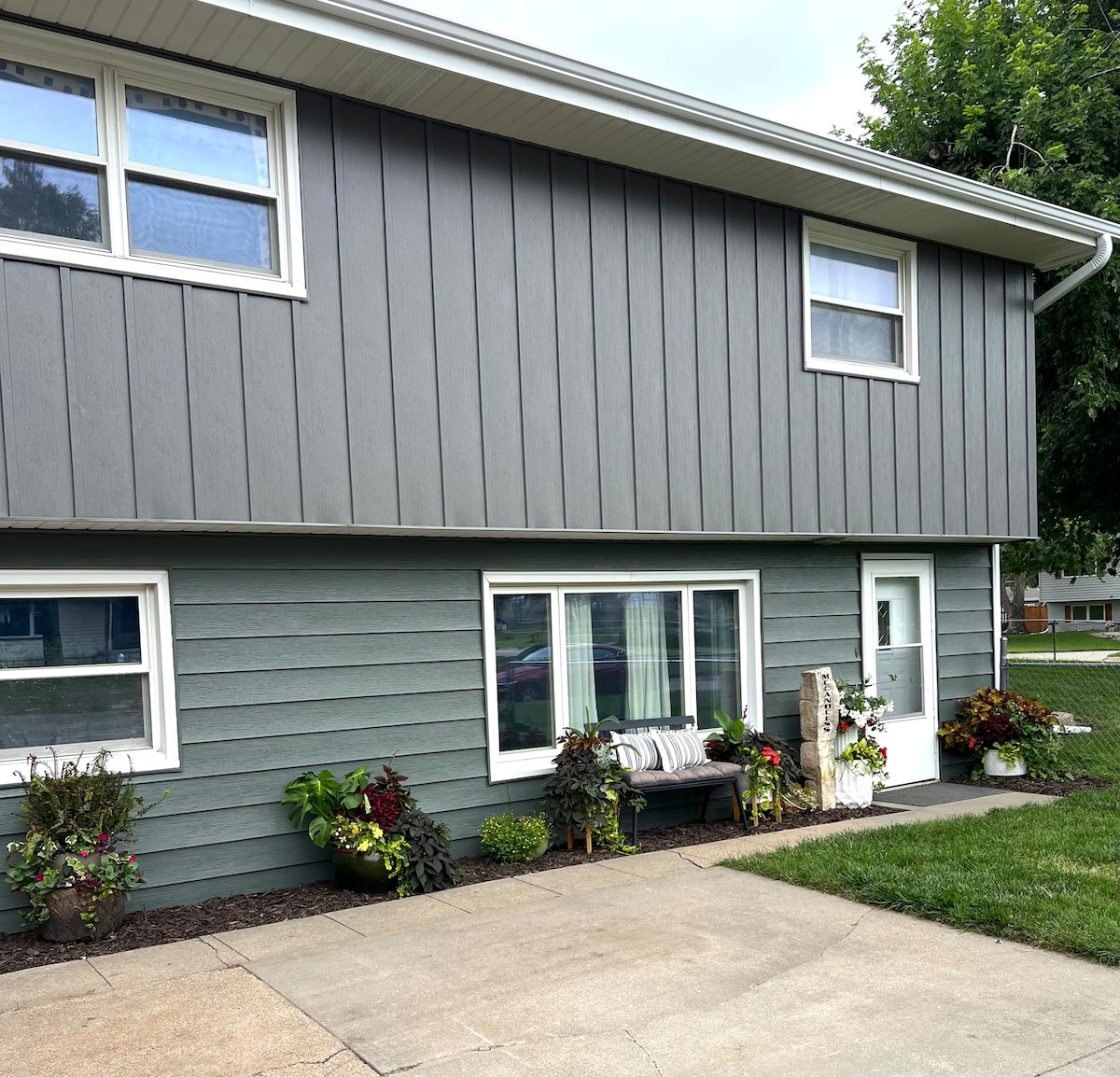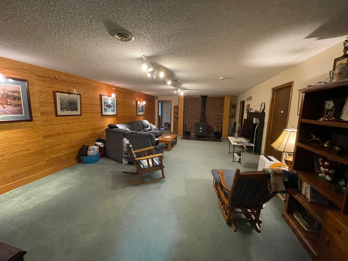 We offer a large bedroom with a daylight window & queen bed. In your own family room area there is one hide-a-bed, as well as one queen air mattress. There is a non-conforming bedroom with two twin beds which we place on the guest discretion to use. You will have your own full kitchen & bathroom. We are located in a quiet neighborhood on the edge of Seward, NE, near Concordia Univ & only 25 minutes from downtown Lincoln - Memorial Stadium, etc. We have lots of space for you.