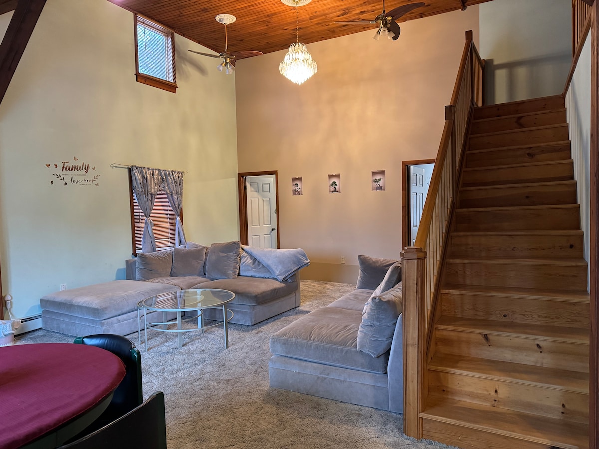 Our house is very open and spacious. It is designed to get around easily. There are multiple places to sit and eat or enjoy nature. The house has numerous windows and is well lit. There is a lot of deck space and a big back yard for games. We are always friendly and open, just down the road if anything is needed! We love meeting new people and do what we can to make your stay comfortable!