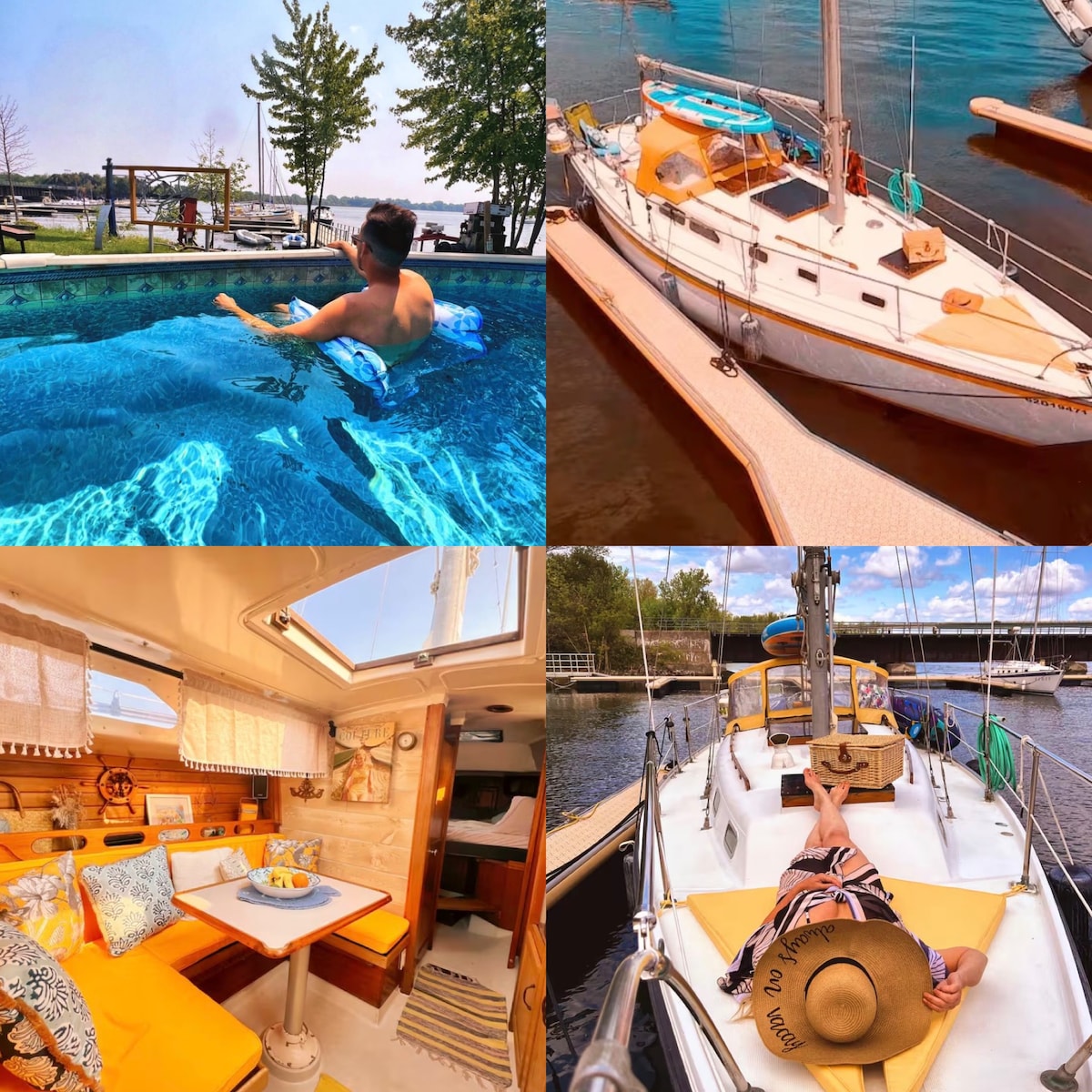 停泊帆船+ SUP +自行车+游泳池+钓鱼