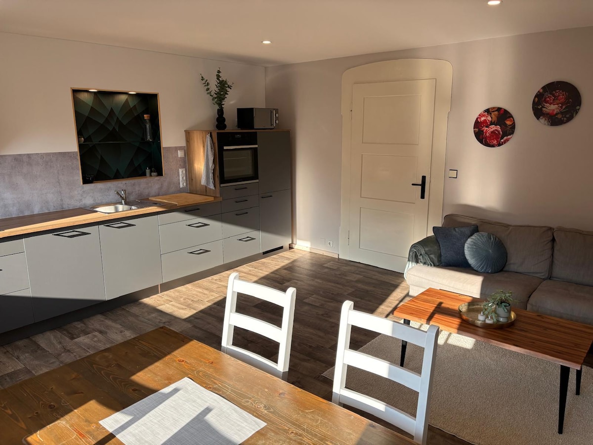 Alt und neu kombiniert, in einem schönen alten Stadthaus im Zentrum von Reichenbach. Die Ferienwohnung liegt im 2. OG und besteht aus kombiniertem Wohn-/ Schlafbereich, Küche, Bad und separatem WC. Der Garten lädt zur Entspannung ein. Das Neuberinhaus ist in 1 Minute zu Fuß zu erreichen. Parkmöglichkeiten sind in der Umgebung vorhanden.