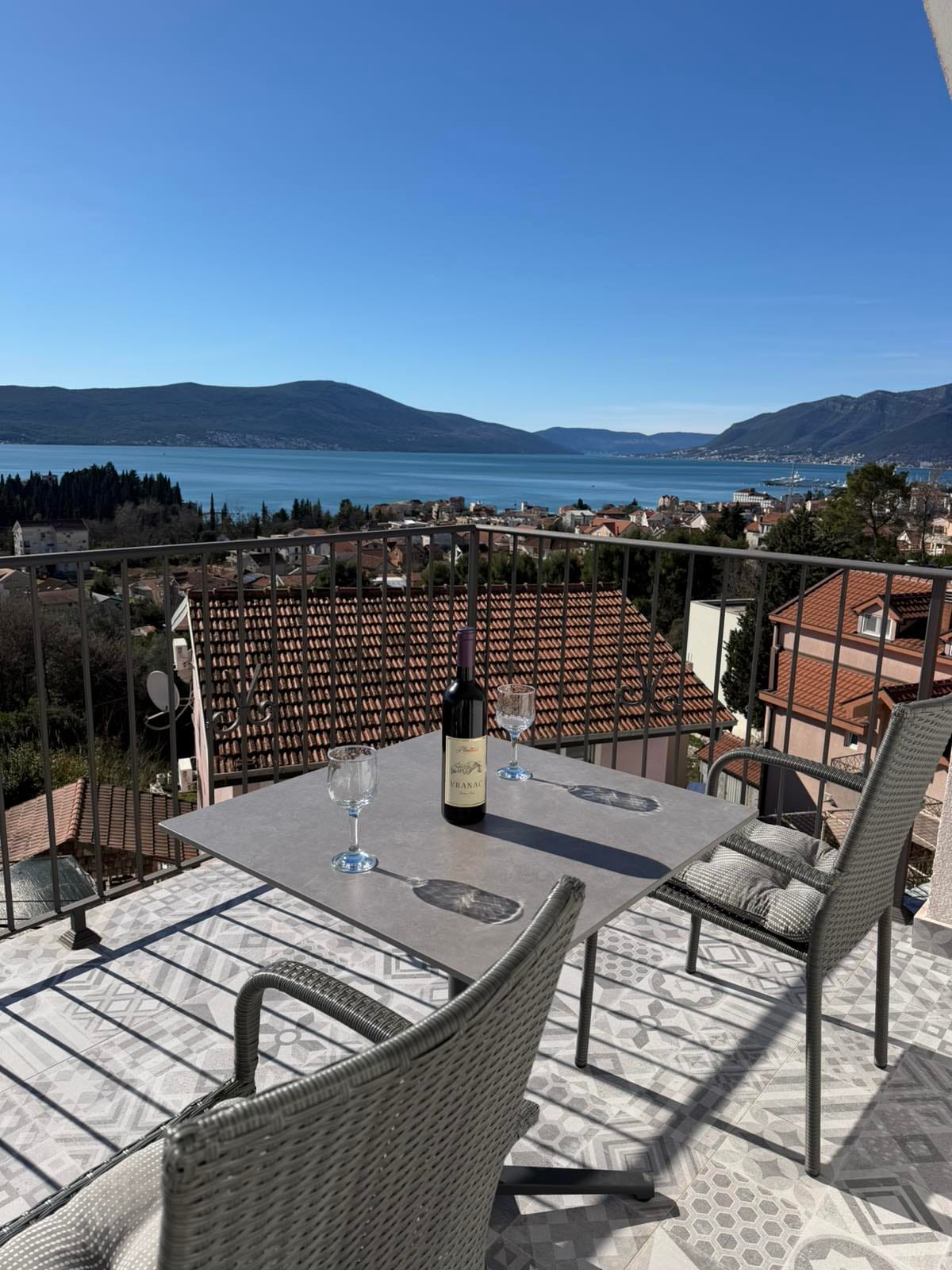 This unique place has a style all its own. Sunny and panoramic penthouse offers the most spectacular views of Boka Bay. You can enjoy the stunning blues and greens of the sea and mountains from all the rooms - including the bathroom! If you want to Chill out by the shared pool, or enjoy your aperitivo on your private large terrace, or just read a great book by the windows- and still be mesmerised by the nature - this is the place for you!
