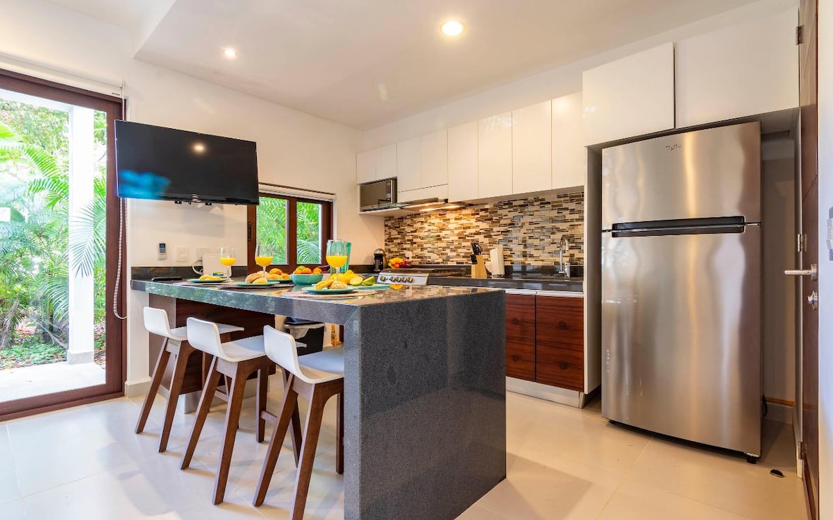 Exclusive Services for Your Comfort! 🚗 Golf cart rental ✈️ Airport transportation 📅 Check availability 🌴 Escape to Paradise in Bahía Príncipe, Riviera Maya Stay in a luxury apartment for up to 6 guests, located in a private residential complex with 24/7 security. Surrounded by tropical gardens, our space offers the perfect balance of modern comfort and nature. 🗺️ Plan your days with adventure, Mayan culture, and total relaxation.