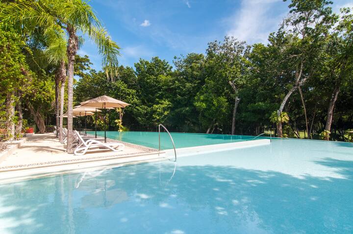 - Wake up to jungle views, then choose from 5 rooftop pools or your private beach club with direct ocean access - Swim with sea turtles at Akumal Bay: the snorkeling here is unforgettable - Ground-floor convenience: walk straight from your patio and soak up the beautiful garden view - Fully equipped kitchen, 2 bedrooms, Smart TV, and everything ready for you to just arrive and relax - Your own quiet escape with all the amenities: no crowds, just Caribbean peace