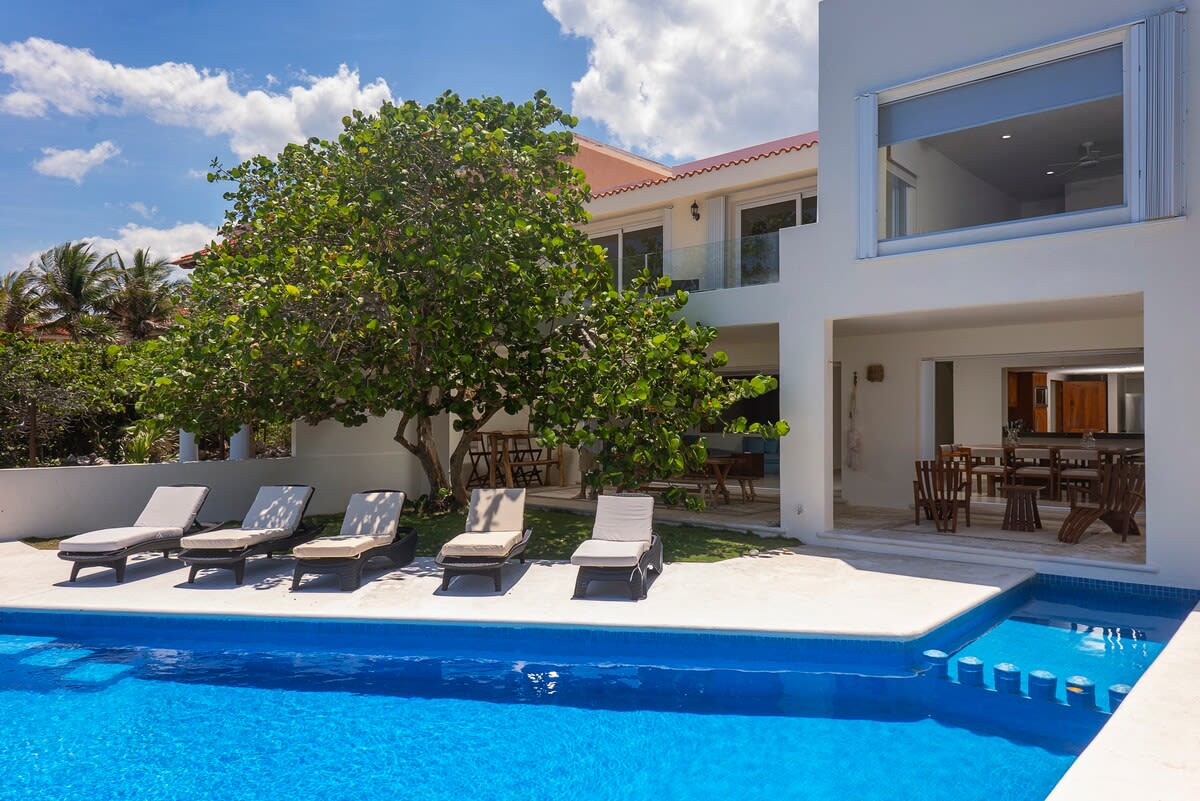 Escape to our luxurious oasis, a serene retreat w contemporary decor & tranquil atriums throughout. Our 4bed/4.5bath villa hosts up to 10, boasting 2 private-access beaches, and a lavish pool. Centrally located, immerse yourself in Akumal's treasures: cenotes, wildlife trails, Mayan ruins, white sand beaches, turtle encounters, snorkeling, fishing, sailing, golfing, and culinary delights! Please note: One of the bedrooms & bathrooms are located in the casita for added privacy.