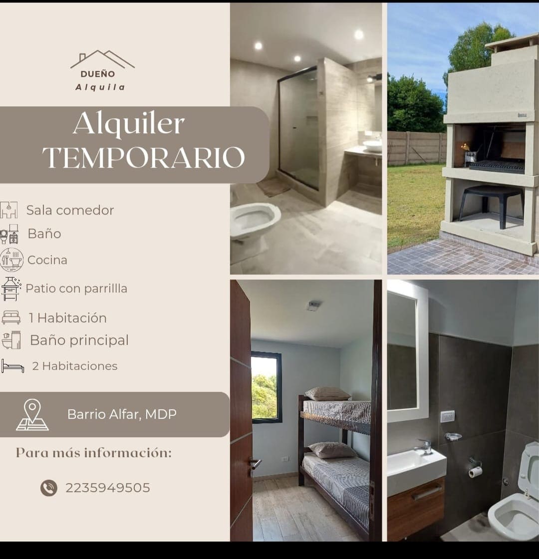 EL DISFRUTE - Cozy and very illuminated house at Bosque Peralta Ramos. Two large, open sunny areas: At the entrance, and another one more private, with a grill, deck chairs and garden table. 65mt2. house, prepared for our guests to have a wonderful holiday. It has a big room with areas divided : living-room, dining-room and the dorm area. The kitchen is well-equiped with another grill inside. It is a PET FRIENDLY space. We look forward to your visit! Special prices for longer periods.