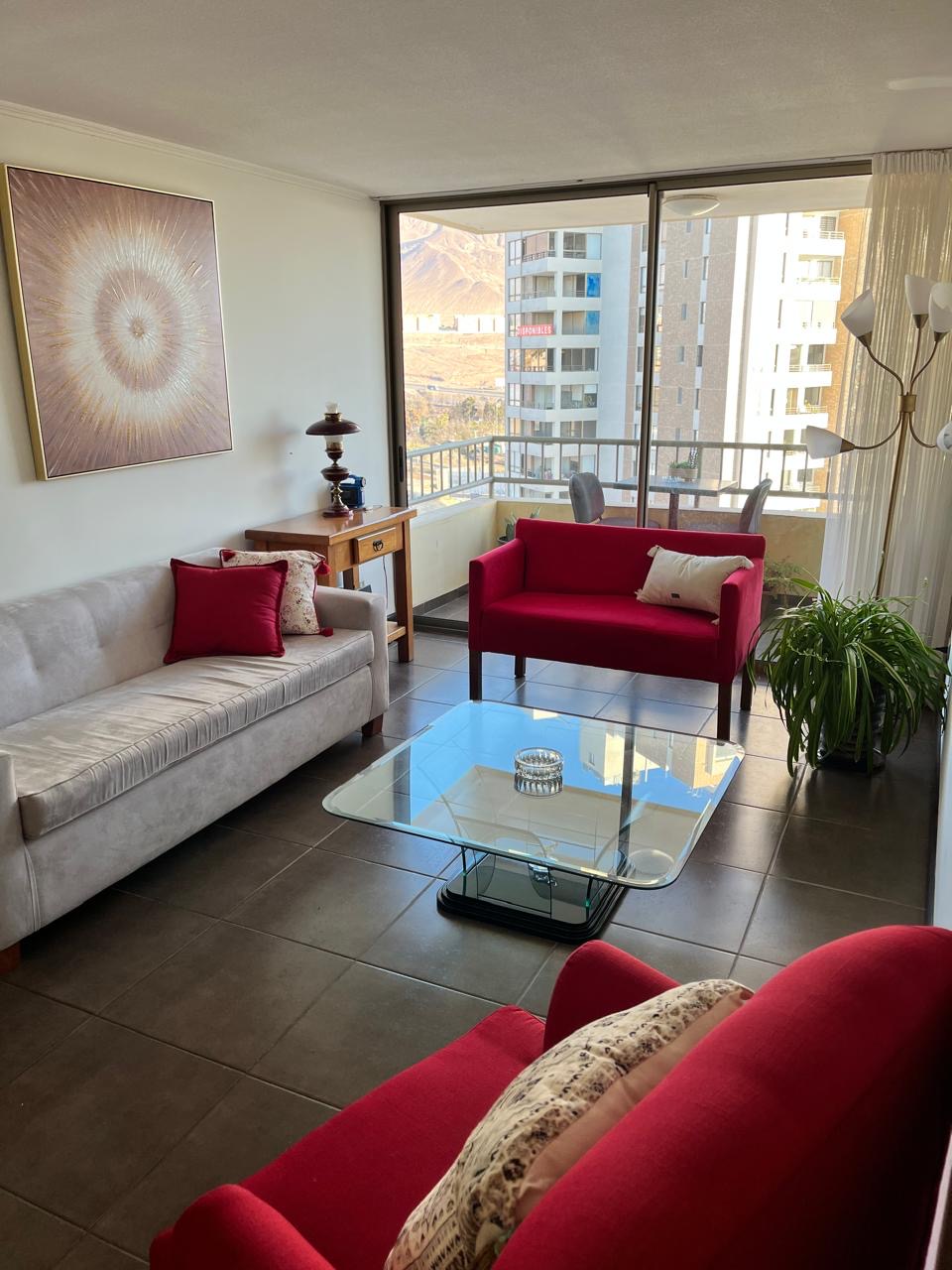 Dpto. Céntrico con vista al mar y Estacionamiento privado bajo techo. full amoblado, excelente ubicación A 10 min del centro. A 2 cuadras a pies de super lider express. A 5 min de la Municipalidad. A 3 min del Hospital Regional. A 3 min del terminal de buses. A 30 min del aeropuerto. Wifi y televisor smart tv de 43”, con Netflix, HBO premium. Cocina full equipada; Hervidor, horno eléctrico, microondas y lavadora secadora sillón reclinable. Silla reposera con vista al mar Conserjería 24 hr