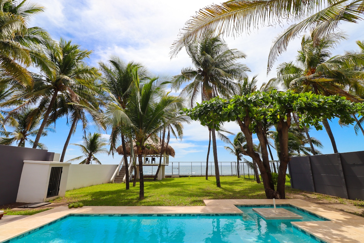 Beautiful beach house facing the sea. Includes a guest house. It has 4 bedrooms. 3 1/2 bathrooms, pool, and hammock area. 20 minutes from El Salvador airport, 30 min. from Surf city Located on Amatecampo private beach, this beautiful house offer sand, sea and luxury living in abundance. Packed with everything to make a memorable stay, this incredible oceanfront house also come with dazzling sand beach on the doorstep. Grab your sunscreen and let's take a look..