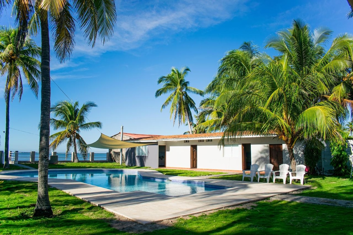 Beautiful beach house facing the sea. Includes a guest house. It has 4 bedrooms. 3 1/2 bathrooms, pool, and hammock area. 20 minutes from El Salvador airport, 30 min. from Surf city Located on Amatecampo private beach, this beautiful house offer sand, sea and luxury living in abundance. Packed with everything to make a memorable stay, this incredible oceanfront house also come with dazzling sand beach on the doorstep. Grab your sunscreen and let's take a look..