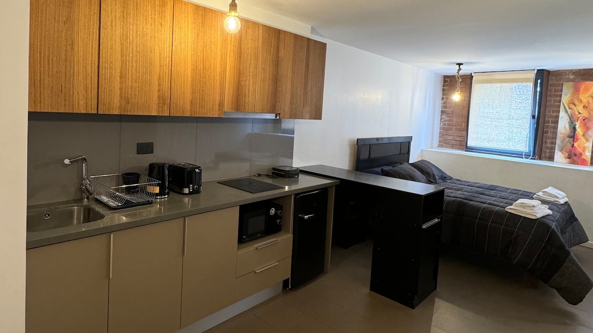 Cómodo, acogedor, amplio y luminoso loft. Tiene terraza y vista parcial a la bahía. Está pensado para que la gente se relaje y pueda disfrutar con plenitud e intimidad del espacio. Ubicado a 100 metros del centro cívico de Valparaíso, donde hay comercio y locomoción de fácil acceso. Está a 10 minutos a pie del metro estación Bellavista, a 7 minutos caminando hacia los pies de Cerro Alegre y Concepción, y a 2 minutos caminando a los pies del Cerro Bellavista.