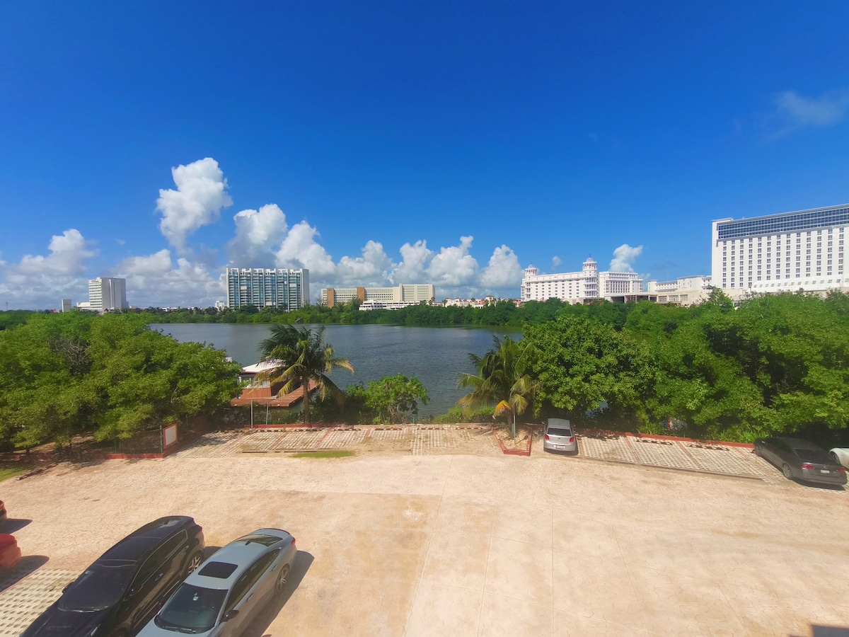 Beautiful and charming 1 bedroom apartment in PokTaPok-Hotel Zone. It’s perfect for solo or couple travelers. It’s your smart choice to actually stay in the Hotel Zone of Cancun without having to spend tons of money in All Inclusive Hotels. The apartment has everything you may need during your stay. There's a lovely swimming pool with views of the beautiful lagoon. PokTaPok residential area is right in the middle of the Hotel Zone. Five minute cab/bus ride to Coco Bongo and public beaches.