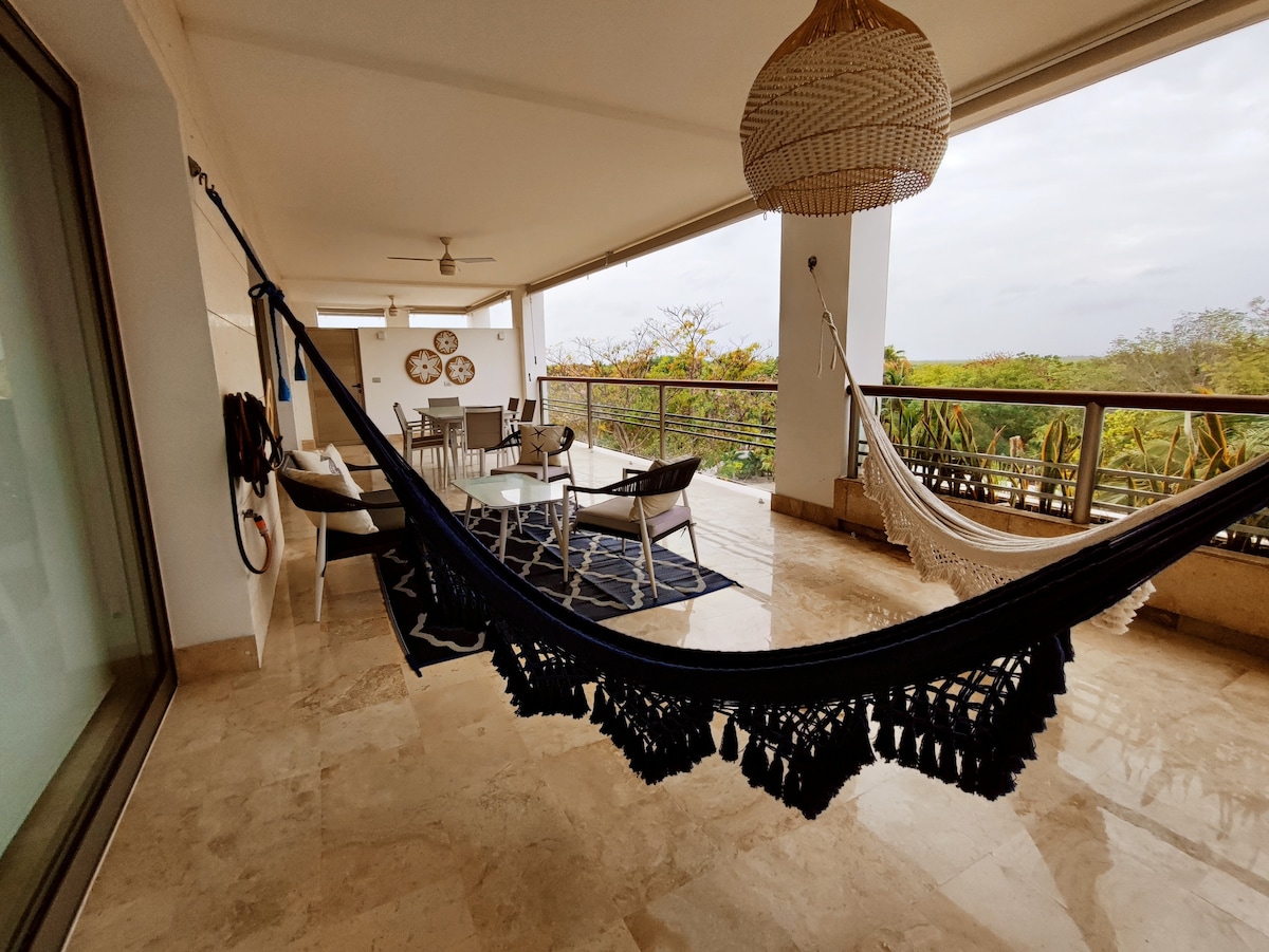 Beautiful Luxury apartment in Puerto Cancun, Hotel Zone, the most exclusive area of the city. Located with a beautiful view of the turquoise blue waters of the Caribbean Sea. Decorated in every detail, your stay will be very pleasant. It has all the necessary services, private parking, access with code and an enviable location! the condominium is connected to the Marina Puerto Cancun Shopping Center and you can walk down to find restaurants, shops, entertainment, etc.