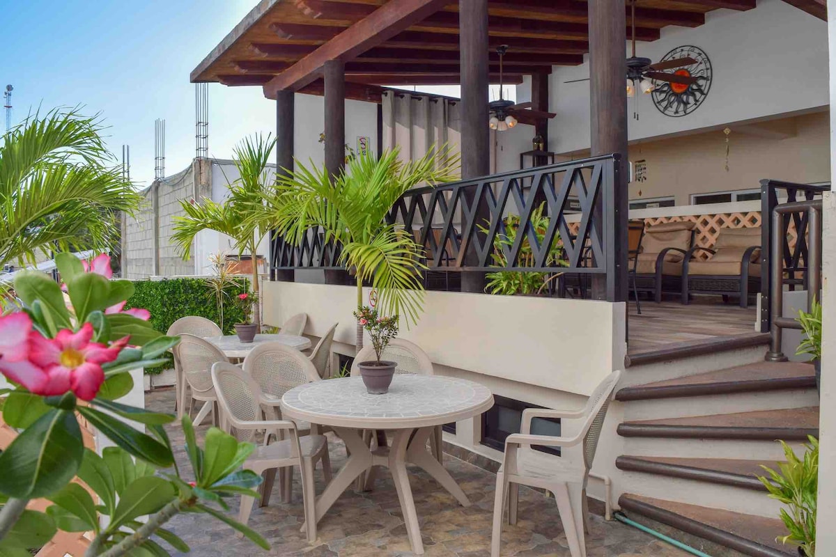 ¡Encantador Suite Familiar en Aparthotel con piscina! Perfecta para familias o grupos que viajen juntos pero busquen habitaciones separadas. Contarán con 2 habitaciones privadas y 1 baño completo privado. -Cada habitación cuenta con: -A/C -SMART TV con cable -Closet y frigobar Además podrán disfrutar la piscina de este bello aparthotel, así como su cocina. --Ubicado en privada residencial con seguridad -gran ubicación cercano a supermercado, parada de bus y restaurantes.