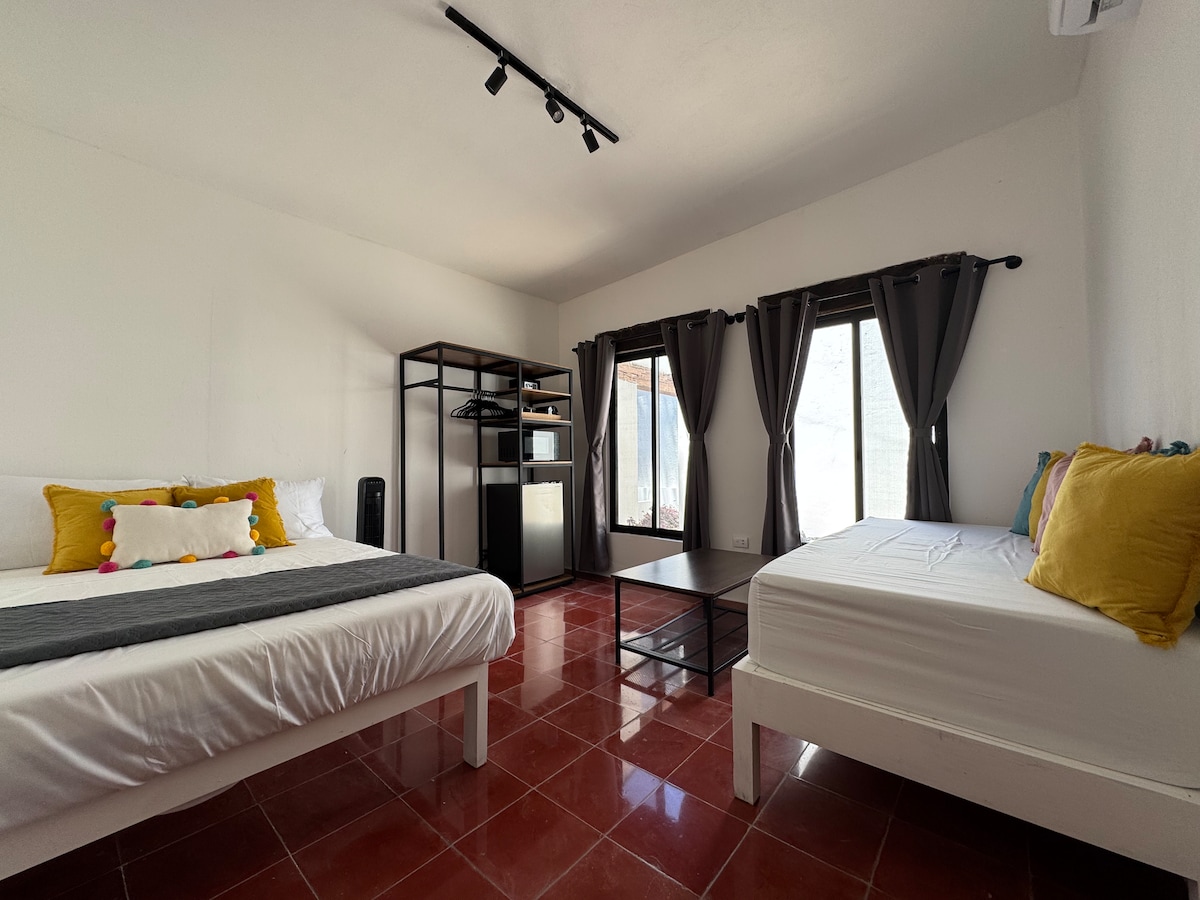 Welcome to The Boat House Suites 2 – the perfect choice for families or small groups. This spacious double suite sleeps up to 5 guests comfortably with 1 king bed, 1 double bed, and 1 single bed. Enjoy all the essentials: private bathroom, AC, Wi-Fi, microwave, mini fridge, electric kettle, desk, and 2 closets. Clean, secure & centrally located in Downtown Cancún, with easy self check-in and everything you need for a relaxing stay. All guests are required to submit a photo of their official ID.