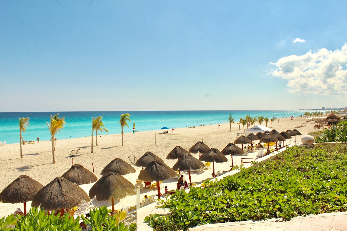 Recently remodeled, direct Beach View Studio apartment, located in the most alive area of Cancun's Hotel zone but still great for relaxing, km 9.5, right next to the hard rock cafe, 24/7 convenience stores near, 24/7 bus services right in front & walking distance from the party zone where all the best clubs/discos are located and of course the amazing turquoise Caribbean an elevator ride away.