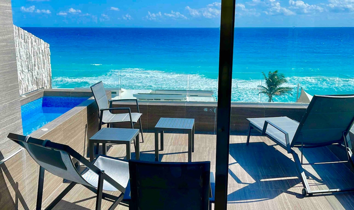 Welcome to our magical and cozy apartment! Perfect for families or small groups: maximum 4 adults and 1 children. Wake up to the Caribbean breeze in this exclusive ground-floor condo with direct access to the beach and pools. Enjoy exclusive, unique, and unforgettable ocean views from the terrace and bedroom. Located in a private complex with 24/7 security in the Hotel Zone, close to restaurants and transport. Relax, unwind, and experience paradise just steps from the sea!