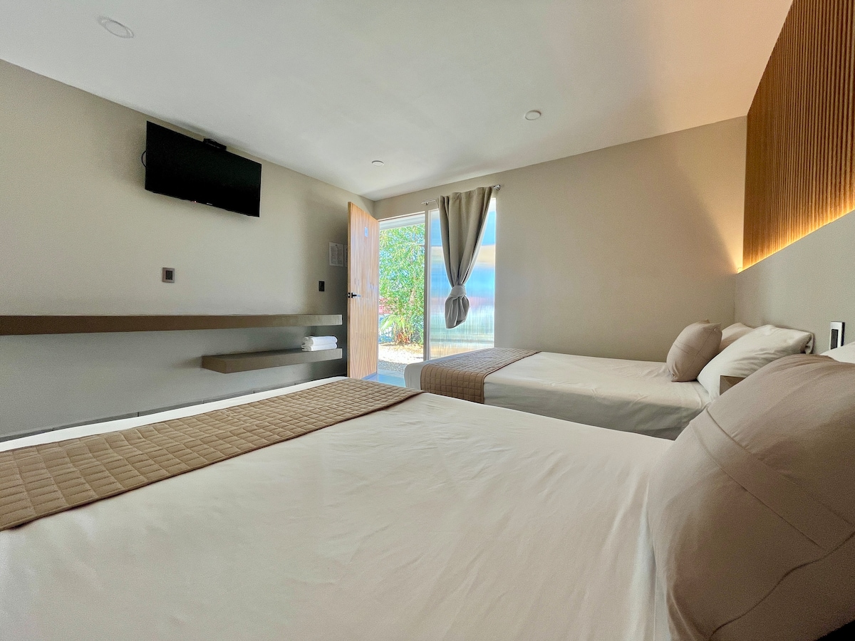 Hotel boutique completamente nuevo diseñado para tu comodidad. Desde el hotel, puedes llegar caminando al Chedrahui, a la playa, y a restaurantes deliciosos. ¡Te esperamos!