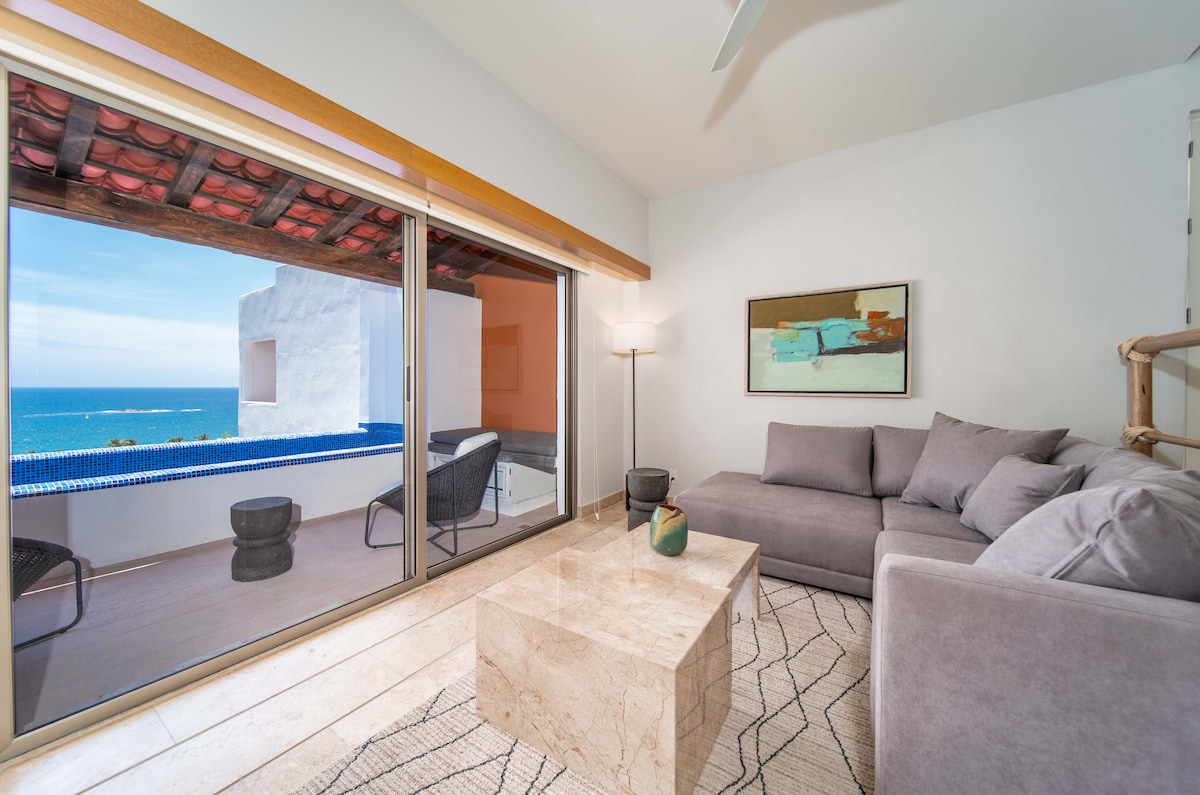Suite ubicada dentro del Hotel Camino Real Huatulco, recámara con terraza con vista al mar, 2 baños, Sofa cama (4 camas individuales), alberca privada, comedor, cocineta, terraza y A/C. No ofrecemos caja fuerte. Camino Real Huatulco private suite, located in the Pacific Coast of Mexico. Master bedroom with ocean view terrace and hammock, 2 bathroom, sofa bed (4 individual cots), Small indoor private pool, dinning room, small kitchen & A/C.