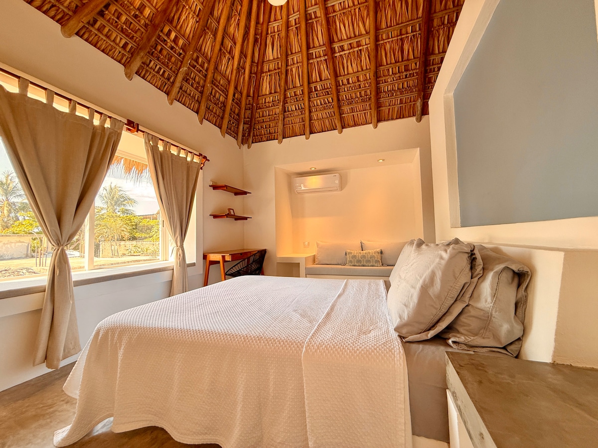 ✨ Tu estancia ideal comienza en Casa Costera ✨ Amplio departamento tipo palapa con acabados de madera y espacios abiertos. Disfruta de cama King con aire acondicionado, sala con sofá cama y Smart TV de 65”, cocina equipada, escritorio con silla, baño privado con agua caliente y WiFi Starlink. Ademas relájate en la alberca tipo dipping pool y aprovecha la ubicación privilegiada: a minutos de la playa Zicatela, el mercado y tiendas locales.