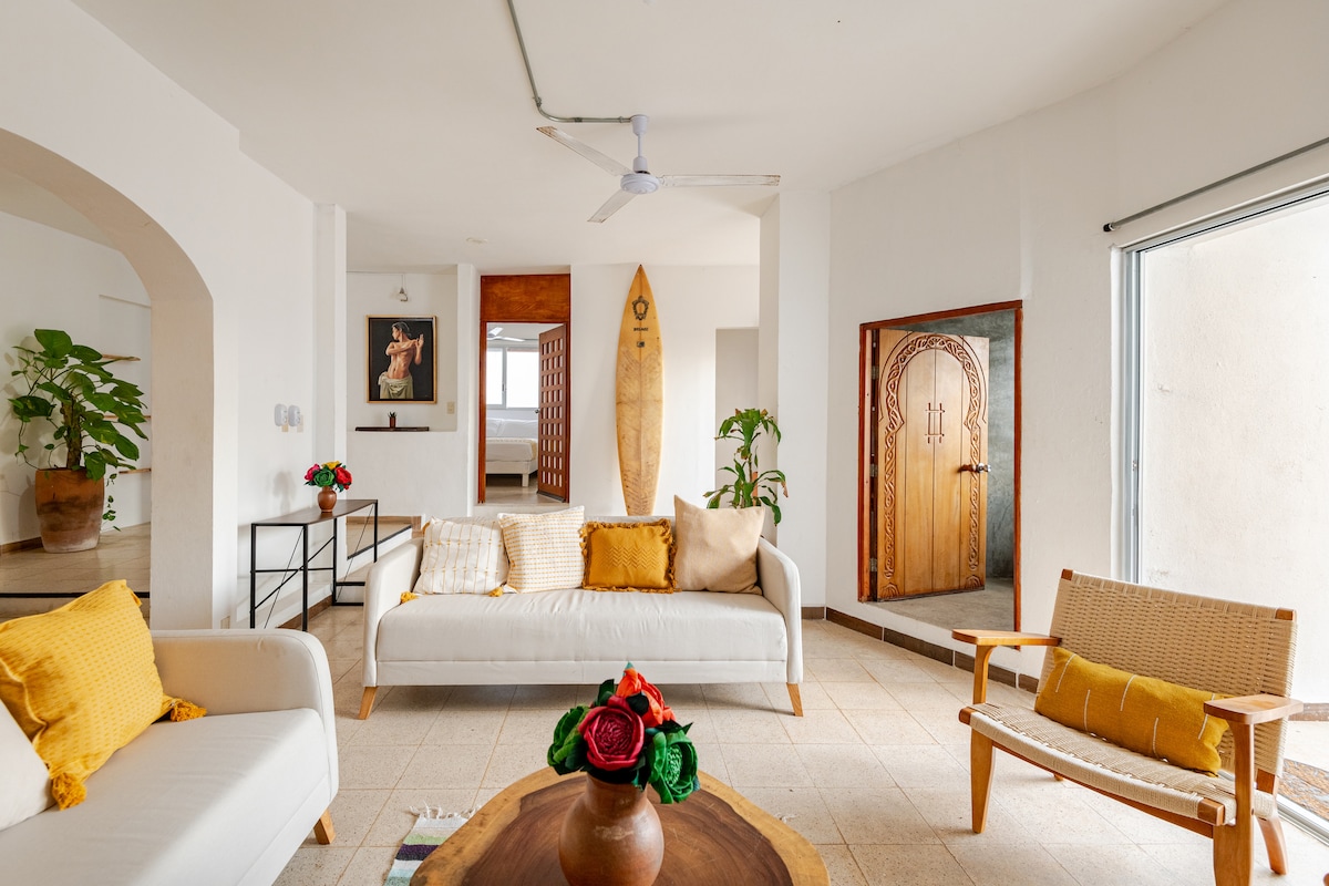 Recently feat in Condé Nast Traveler "35 Airbnbs With Amazing Pools" @casahezbo is one of four of this unique design, premium amenities, high-speed Starlink internet, best of Puerto Escondido on your doorstep. Located in La Punta, 5 min walk to the beach, restaurants, bars, & coffeeshops. Two bedrooms (king & queen), two full baths, a full kitchen, living area, dining area, & pool in a unique indoor-outdoor design. Bedrooms include shutters, are fully enclose-able, include AC & ceiling fans.