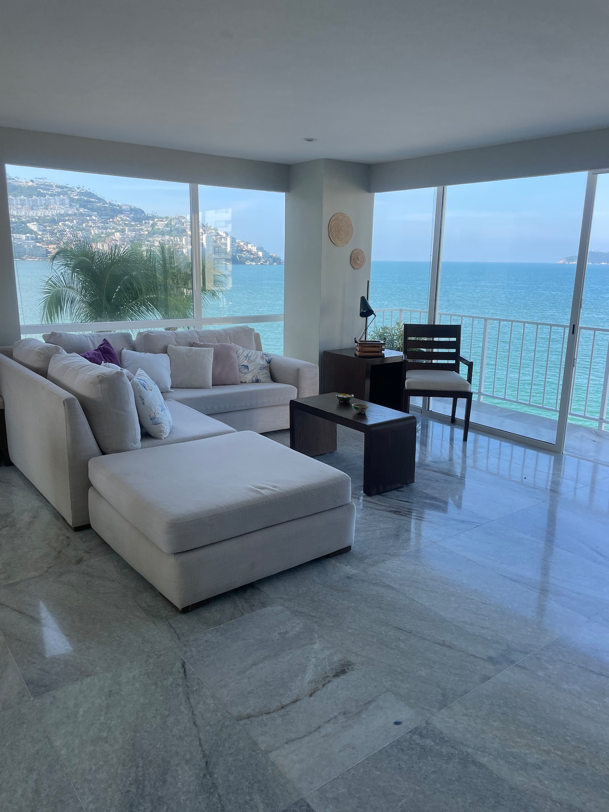 Lujoso, moderno y amplio departamento al pie del mar con vista espectacular de la bahía. El condominio tiene acceso directo a la playa, una zona de alberca con jardin, wifi gratuito en áreas comunes, sundeck y playa privada ! Ambiente relajado y familiar, seguridad las 24h y un personal muy amable y eficiente. Excelente ubicación, a un paso del club de golf, muchas opciones de restaurantes y supermercado cercanos. No se aceptan mascotas.