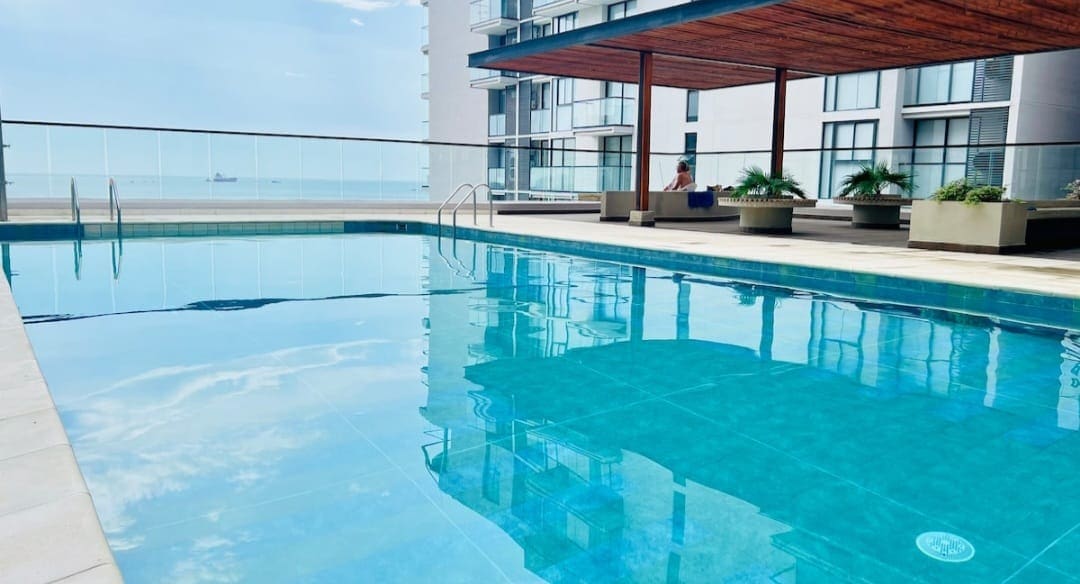 HOSTY HOME: Tu hogar fuera de casa. Apartamento con jacuzzi en la terraza, donde podrás relajarte con una increíble vista al mar . El Edificio está ubicado a una cuadra de la playa, ofrece 3 hermosas piscinas, gym, mini market, SPA. Cerca del Centro Comercial Zazue a 10 minutos del Aeropuerto, con acceso a restaurantes y supermercados Cada detalle ha sido pensado junto con Hosty Home para que disfrutes de una experiencia inolvidable. ¡Bienvenido!