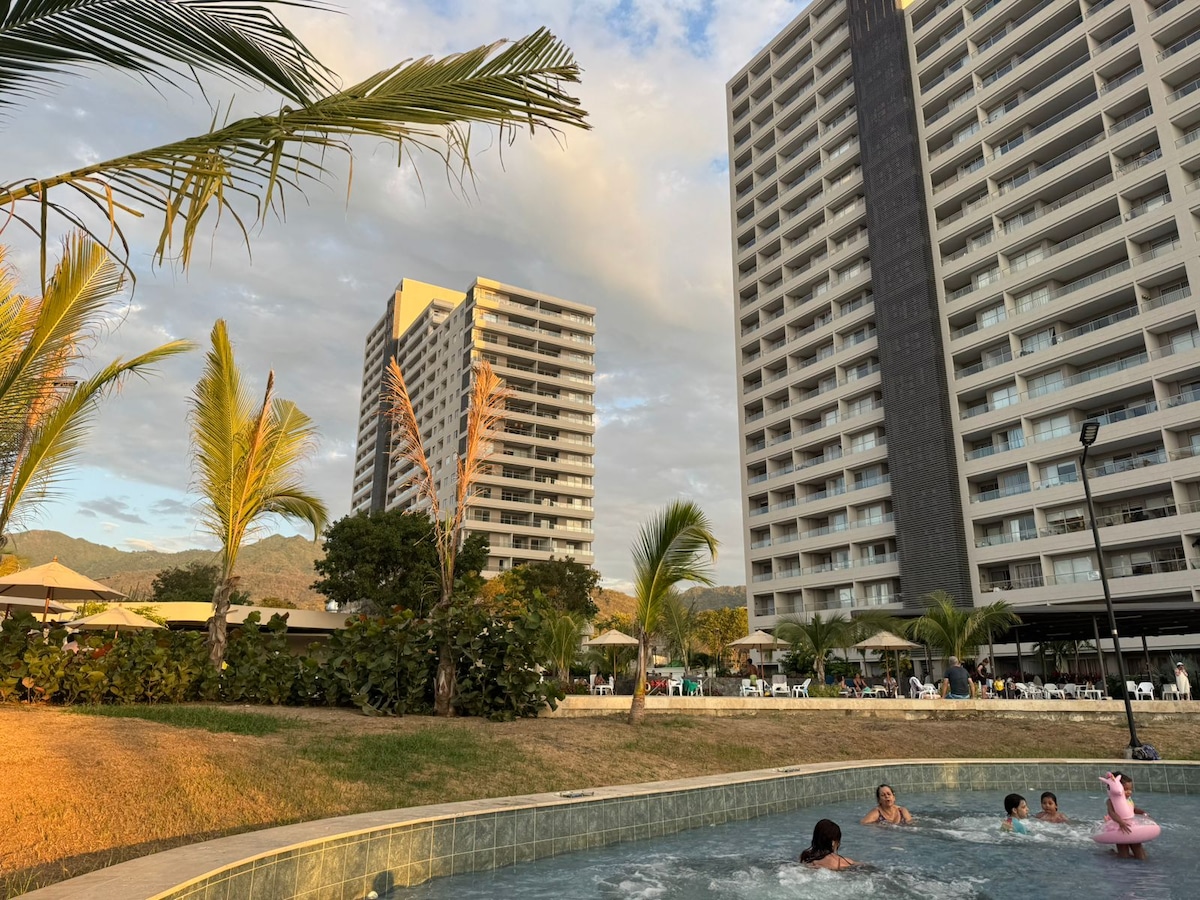 🏖️ Apartment with a private 🛁 jacuzzi, terrace with a 🪢 hammock, 🍳 fully equipped kitchen (air fryer, coffee maker, blender), 🏖️ beach kit included and access to 🏊♂️ 3 swimming pools. Just 100 m from the beach and 10 min from the airport ✈️. Includes 🧴 amenities and 🧼 bath and beach towels. Building features 🏋️♀️ gym, 🛒 mini market, 🚗 free parking, 💇♀️ hair salon, Turkish bath and sauna (extra cost). Close to 🛍️ supermarkets and restaurants. IDEAL PARA ESTADÍAS CORTAS Y LARGAS.
