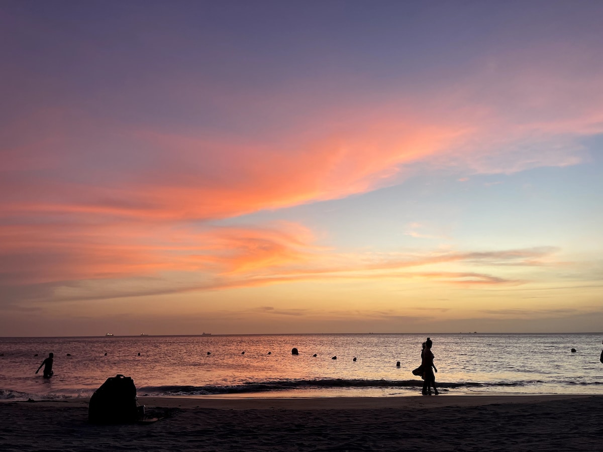 海滨日落景观 | 直通海滩 + 游泳池 + 无线网络