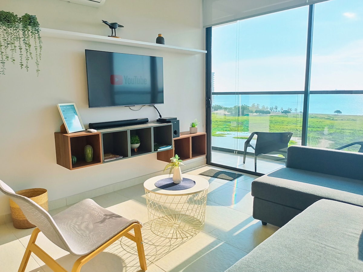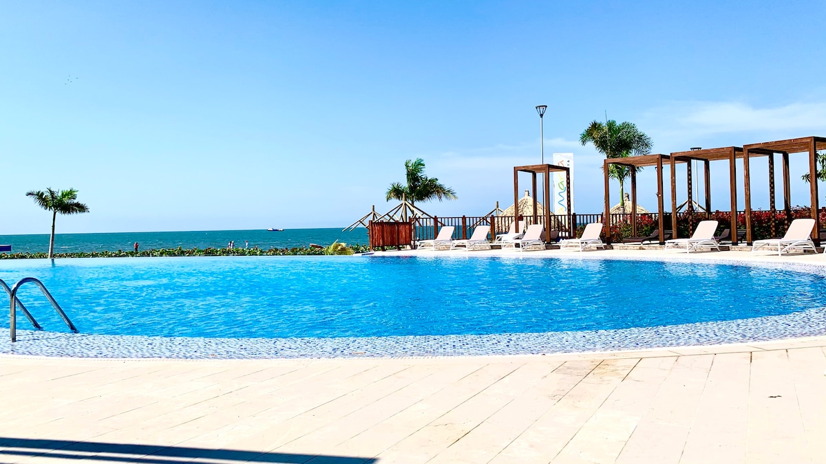 For couples and families looking for the best location. A place with all the facilities of a home and the comforts of a hotel. Spectacular pool with bar, restaurant, gym and games for children. You will be just steps from the best beach and the price of your stay includes umbrellas, chairs and towels. From the apartment you can walk to the supermarket and a wide variety of restaurants in the Zazué shopping center. The city center is a 10-minute taxi ride away.