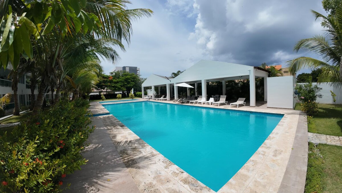 Welcome to your tropical getaway in Punta Cana! Located in a gated community, this charming apartment offers a unique private balcony, gym, a golf course, multiple swimming pools, and an artificial beach with bars and restaurants. You're just a short drive from local beaches and minutes away from supermarkets, downtown Punta Cana, and restaurants. The airport is a quick 20-minute drive. Enjoy high-speed WiFi, Netflix, and Board Games. ✅We do NOT charge an extra fee for electricity usage :)