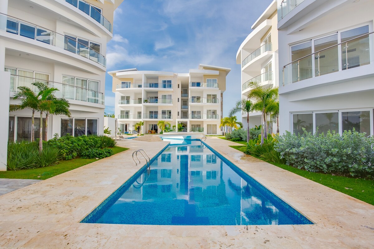 Stunning Modern Beach Condo Amazing views luxury living in this brilliant 2 bedrooms condo beach, innovative architectural design, perfectly situated on the two floor with easy lift access Resort Features: - Amazing Pool - Parking - Beach This brilliant condo offers the ultimate blend relaxation, entertainment and convenience. Don't miss out on this incredible opportunity to create an atmosphere of sophistication and stillness. Condominio Retiro Bavaro II Bavaro Beach | Bibijagua Beach
