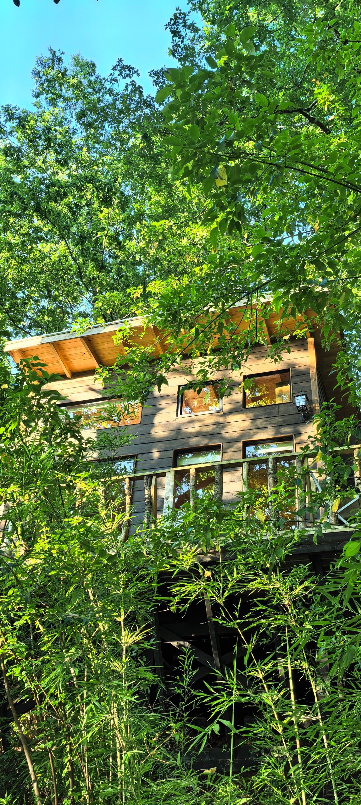 高大树木之间的私人热水浴缸房源
