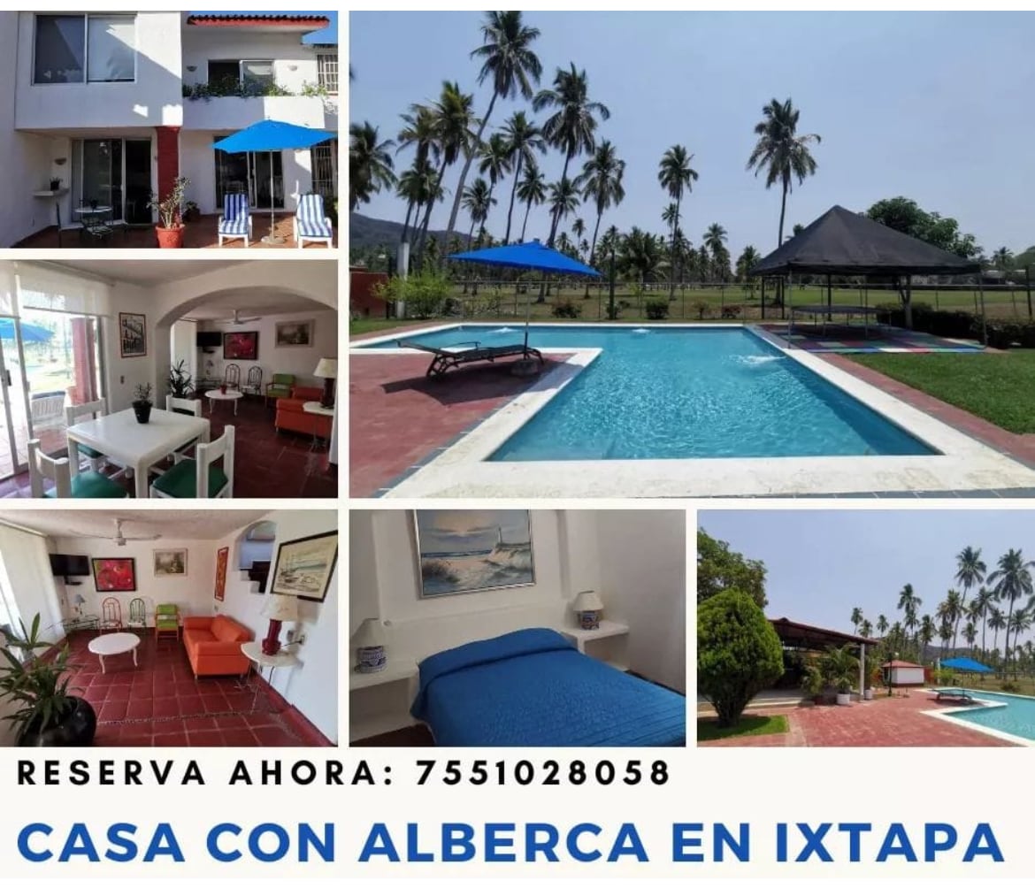 Enjoy a clean private pool. relax in hammocks. The 3rd level is an outdoor kitchen.The main kitchen is on the first level. All 3 bedrooms 2nd level Two balcony's two Bathrooms. AC in every room. Things to do ride horses, beach fishing snorkeling. The community is very friendly. Beach access 100 ft from house. From the airport its 5.1 miles (14min). From the house to downtown zihua its 12 miles (25 min)and from the house to ixtapa area is 30 min.