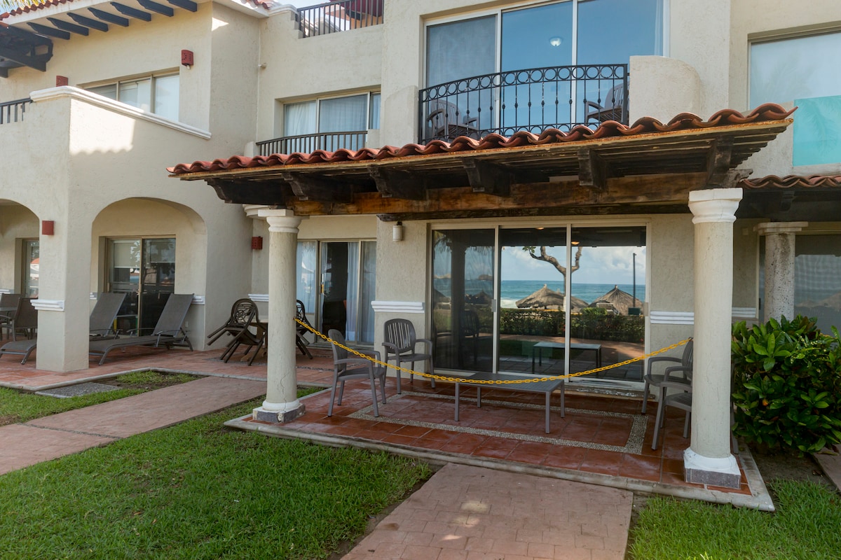 Sobre la playa a 80 mts y estarás en la arena , Ideal para 2 personas situado a 20 minutos del aeropuerto a 300 mts de la Marina Ixtapa y a solo 100 mts de la ciclopista,planta baja,alberca para adultos, canchas de tenis,estacionamiento ,Cocina,TV 42" A,Internet,Restaurante,servicio de toallas y camastros,limpieza diaria opcional.seguridad 24 hrs.