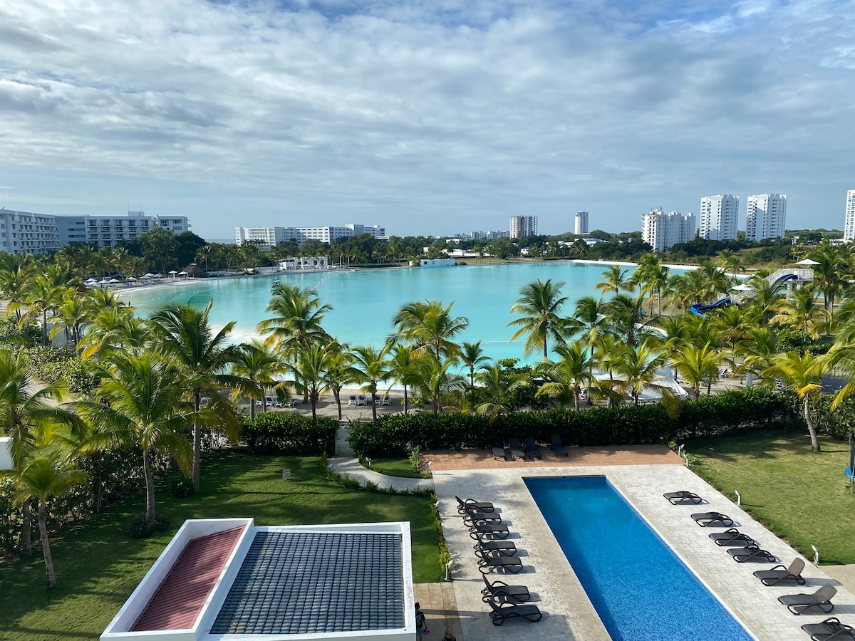 Escápate a disfrutar en familia o con amigos de la comodidad de este hermoso y acogedor apartamento equipado con todo lo que necesario para tus vacaciones. Cuenta con 1 recámara, terraza preciosa, 1.5 baño, sofá cama, comedor, una excelente cocina, aire acondicionados, WIFI y TV con cable incluido. (Máximo 4 personas). Magnífica vista a la piscina más grande de centro America. Cuenta con playa a solo 5 minutos, cancha de fútbol, tenis, baloncesto, parque infantil y toboganes de agua.
