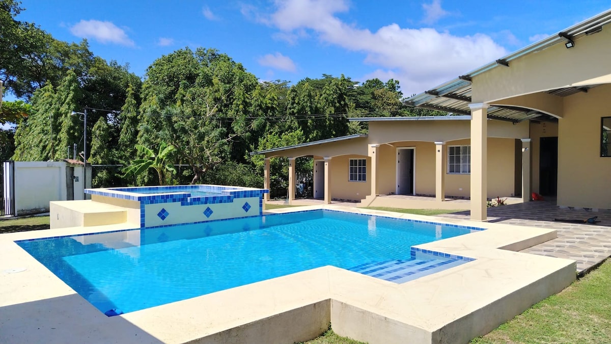 Spectacular villa a few minutes from the beach by car, super spacious, ideal to share with family, friends or corporate meetings. The property is full of surprises and with many things to do including its swimming pool, jacuzzi, pool table, ping pong table, domino table, hammocks, large green areas, gas BBQ, variety of board games and a fully equipped kitchen.