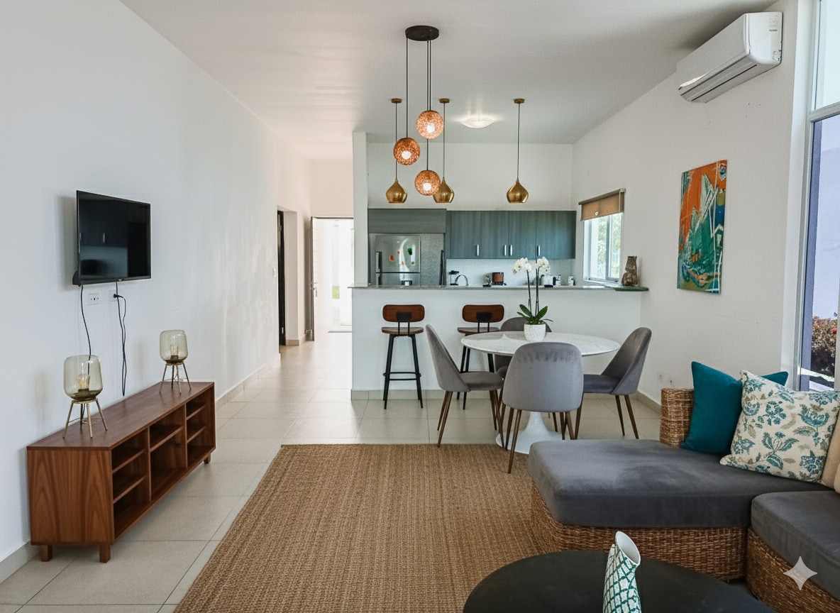 Unique Villa steps away from the ocean and fully furnished ground floor unit 2 bed/2 bath apt has an open concept living, dining & kitchen space with sofa bed (6 guests). This is a unique villa apartment over looking the picturesque Playa Caracol coast with ocean front and majestic mountain views. Playa Caracol is located on the beach of Chame and is a newly developed area with expansion for the property and amenities. 1km of beach to offer you the best beach experience around.