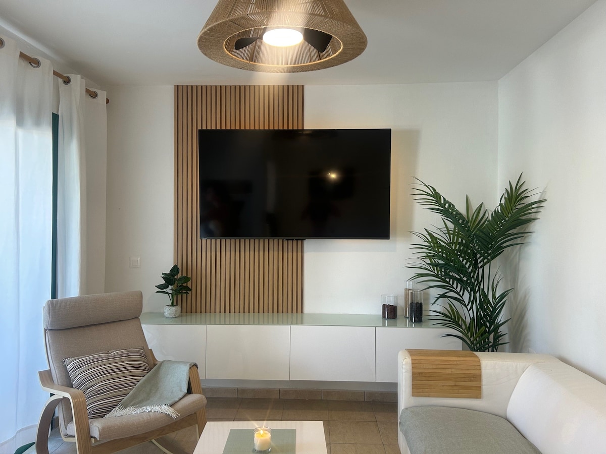 Bel appartement situé dans le complexe Atalaya, calme et sécurisé. Profitez d un logement confortable et parfaitement équipé. Une vue mer exceptionnelle, un emplacement idéale à 5 min à pied de la plage et à proximité des commerces et des services (restaurants, pharmacie, docteur, banque...).Commerce alimentaire à 2 min à pied. Piscine collective sécurisée et jardins paysagers entretenus. A 15 min de l'aéroport, position centrale animée en toutes saisons pour découvrir les trésors de l'ile.