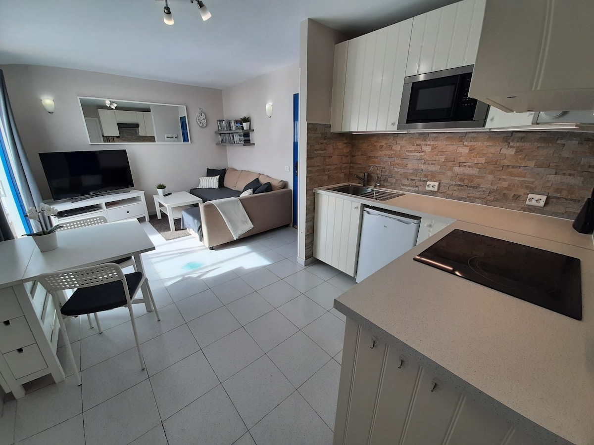 Casa Enda is a cozy modern and quite apartment with an amazing sea view just 5 mins walking from Playa Chica. There you will reach 7km of gold beaches. Swimming pool inside the complex.Casa Enda is perfect for water sports lovers.The most beautiful trails of the island start just outside the door. Even shopping lovers like the location.In the evening you could jump into the colorful nightlife of the island and discover its tasty local cuisine.At Casa Enda everything is just a stone’s throw away!