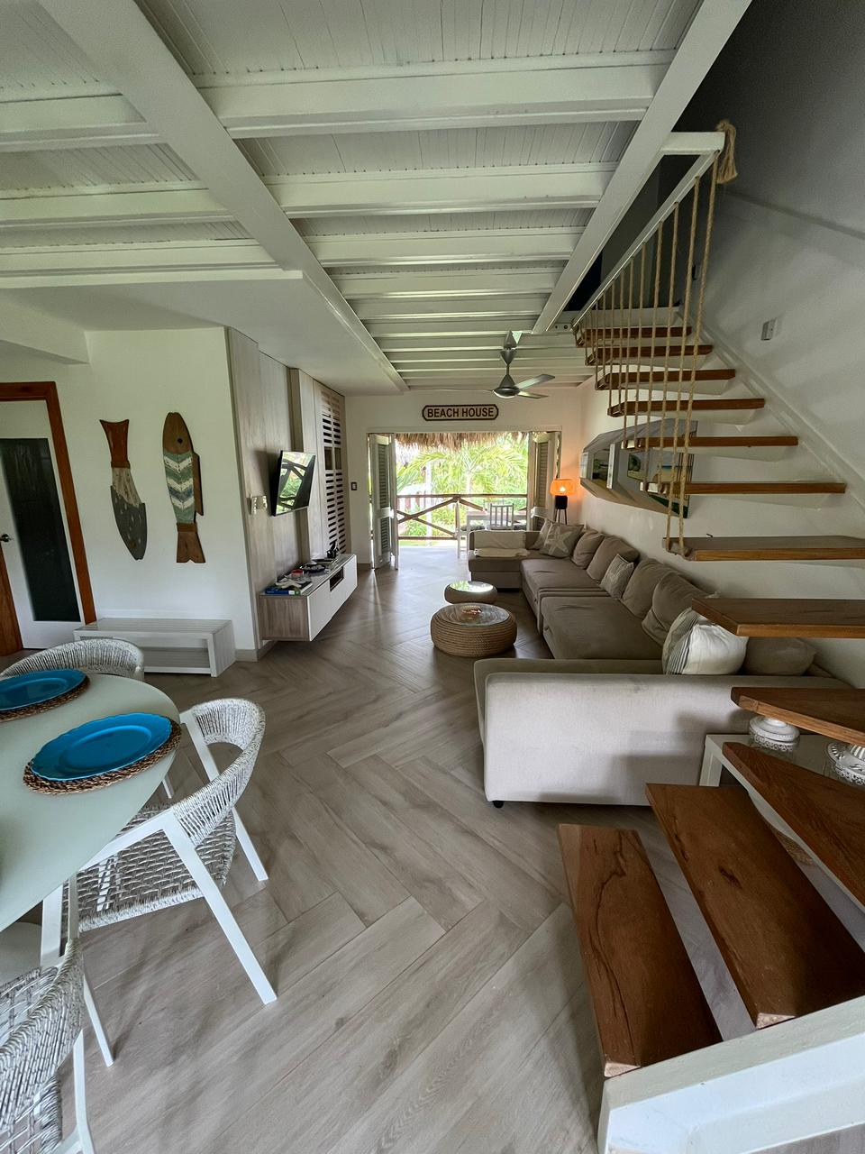Area NOT affected by Hurricane Melissa. Beautiful Boutique-Hotel style Beach House in THE top location at Playa Bonita and truly beachfront. Fully equipped house for 1 - 2 couple(s), friends or 1 couple w. kids. Energy saving, noise cancelling European windows + sliding doors w. Mosquito screens. PV power backup + cistern. 2 TV's, Netflix, Gas BBQ, Dishwasher, Microwave. Spacious terrace facing the ocean: lounge bed + bathtub for 2, hammock. High speed WIFI. No car traffic.