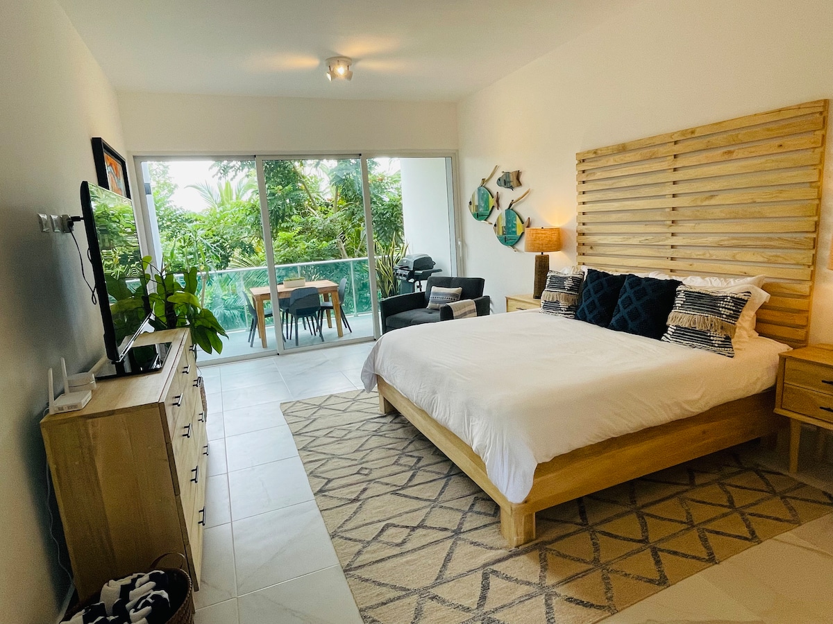 Studio para dos personas en Playa Bonita, Las Terrenas. Este acogedor espacio cuenta con cocina pequeña, baño confortable, balcón privado y Smart TV. Además, disfruta de aire acondicionado, agua caliente, acceso directo a la playa, piscina y cancha de tenis. Un refugio ideal para relajarte y vivir una experiencia inolvidable en uno de los destinos más bellos de Las Terrenas. ¡Reserva ahora!