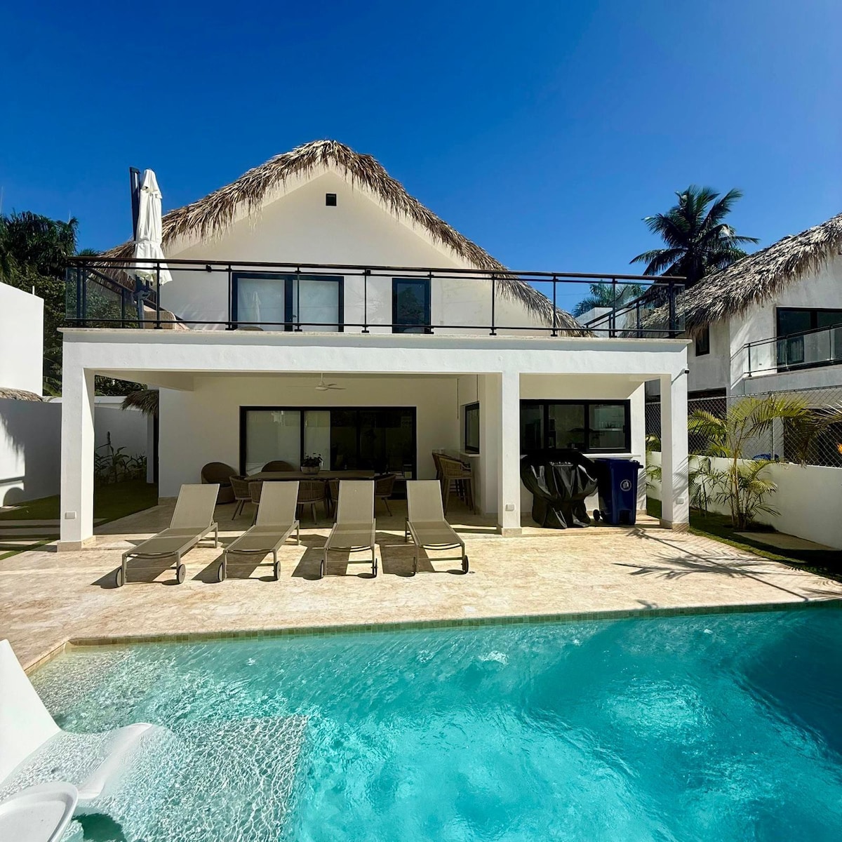 About Casa Ana... Spacious and comfortable, this beautiful bach house is located on the seafront in the heart of Costa Las Ballenas Residences, on one of the island's most beautiful beaches, Playa Bonita, and one of the few places with direct access to the sea with no road to cross. Peace and quiet. Ideal for families with children on short or long stays. Las Terrenas village is a ten-minute drive away, with a multitude of restaurants, bistros and lively nightlife.