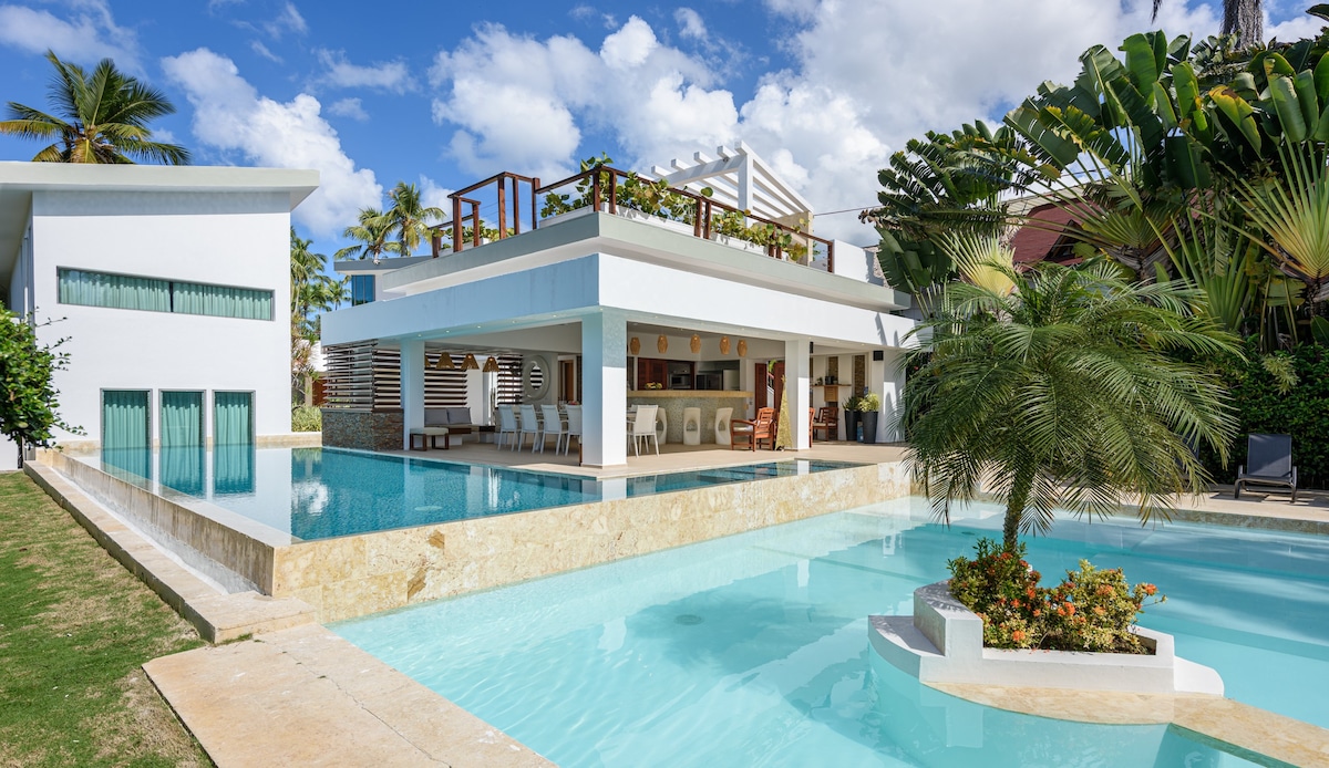 Private pool 🏊 Electricity included in nightly rate ⚡️ Drinkable water (whole-house filtration system) 💧Housekeeper three times/week 🧹 Private chef services available 🥘 One minute walk to Punta Bonita via private Cap Bonita access 🏝️ Five minute beach walk to Mosquito and surfing🦟 This airy, five-bedroom villa was newly built in 2025 and is second line to Playa Bonita, the most beautiful beach in Las Terrenas. Luxury linens and bath amenities will please the most discerning travelers.