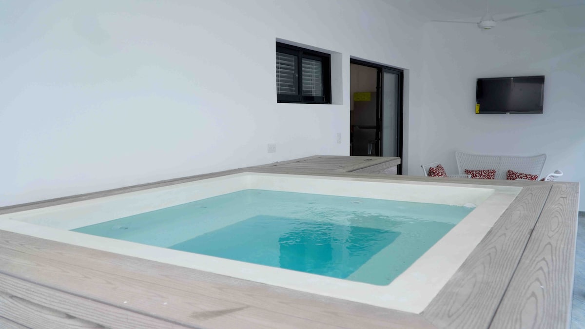 This brand new penthouse is centrally located, just a 3 minutes walk to the beach. Between town and the beach: Punta Popy. The penthouse is unique by the beautiful (Ocean) view, large terrace, private jacuzzi, and BBQ. It gives you the feeling that you are in a honeymoon suite. Enjoy the beautiful surroundings from the jacuzzi with a glass of champagne. Feeling home, away from home. There is a generator back up system and an elevator in the building. Fiber internet connection.