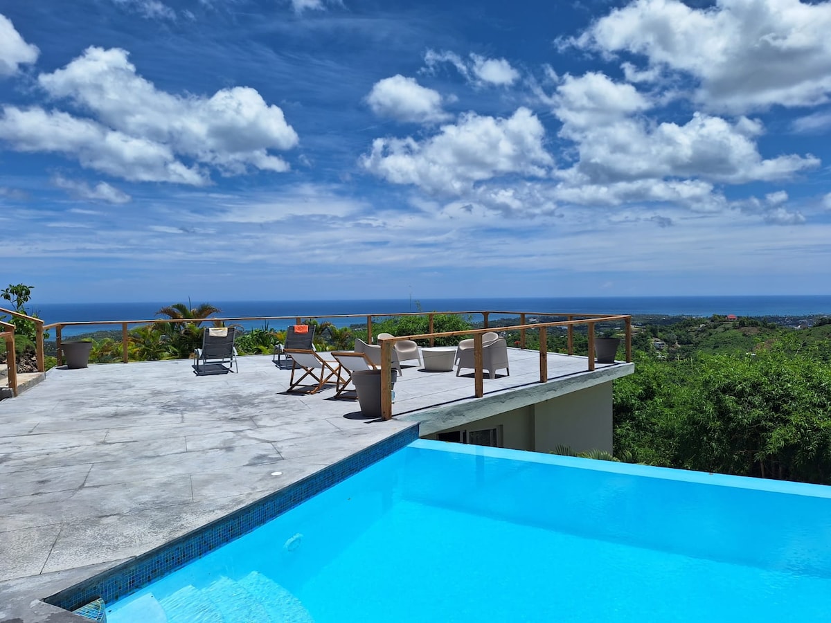 This modern and luxury villa offers breathtaking ocean views, a private infinity pool, jacuzzi, and a fully equipped kitchen. Stay cool with air conditioning in every bedroom, and enjoy high-speed Wi-Fi and Netflix for all your entertainment needs. Just minutes from beautiful beaches and vibrant nightlife. Pet-friendly with ample parking. Perfect for couples seeking a romantic getaway, families looking for a luxurious escape, or business travelers needing a peaceful workspace.
