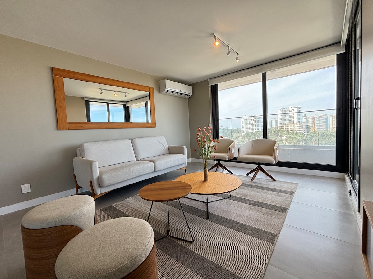Located mansa beach, stop 4, 30 meters. from the sea, in front of the Enjoy Conrad.The unit has: 1 bed, bath, integrated living and kitchen, in an open concept and exit to the terrace with sea views. It has:electric oven,washing machine, microwave,Smart TV 58 ",refrigerator, sofa bed, air conditioning, safe and basement garage.Gym, sauna, 2 barbecue grills, swimming pool, games room. Beach service: Dec 13th to March 15th, Mon to Sun, from 8:30 am until sunset.